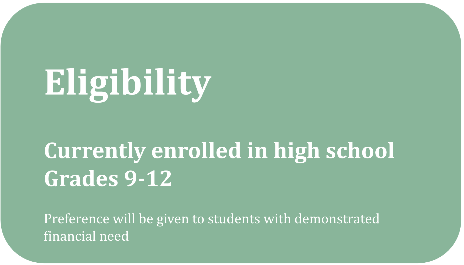 Eligibility: Full time students attending high school in the US, Grades 9-12. Preference will be given to high school students with demonstrated financial need.